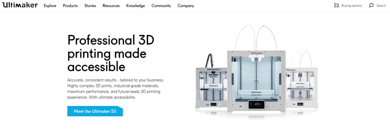 Ultimaker is a 3D printing company. Its website is clean, simple and to-the-point. The use of whitespace allows their short demo videos and high-quality pictures to stand out, keeping the focus on the product rather than the website design. Ultimaker’s website design even won CSS Design Awards Special Kudos in the past. And while 3D printing at an industrial scale can be complicated, Ultimaker keeps the jargon on its website to a minimum.