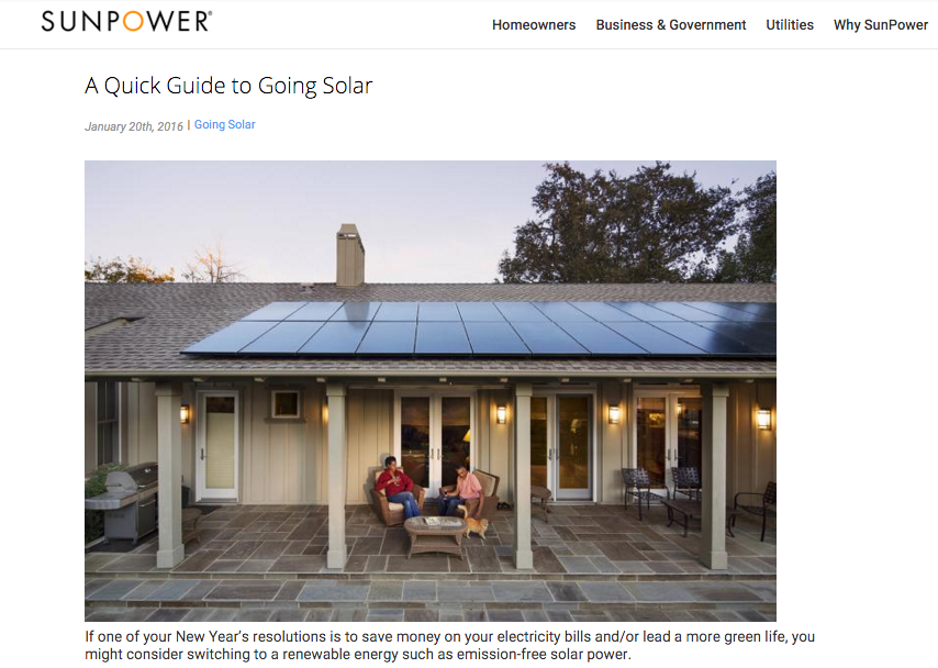 For example, SunPower, a California-based energy company that manufactures solar panels, published this guide to going solar. The company explains how solar energy works, how to determine cost, installation and offered a free solar calculator before ever asking prospects to contact them.