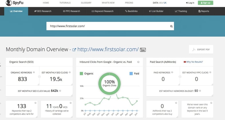 Why make the same mistakes your competitors have made when you can learn from them? As its name implies, SpyFu is a great way to spy on the competition so you can learn from their failures and more importantly, their successes. When you type in a competitor's URL, you'll be able to see how many keywords they are ranking for organically and even the ad value of those keywords. It also offers good analytics on backlinks driving the most traffic to your competitors' sites so you can see where you might want to publish guest blogs or be listed. If they are running any paid advertising campaigns, you can even see what campaigns they're running and how much they're spending.