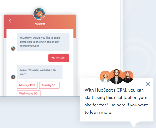 For HubSpot users, it’s easy to create, automate and even scale chatbots to the needs of a particular account. And because the chatbot builder is seamlessly integrated with HubSpot's free CRM, the bots you make can deliver friendlier, more personalized messages based on information you already know about a contact. So instead of your sales team spending time on the early phases of lead nurturing, they can step in when those leads have already had some interaction with the bots.