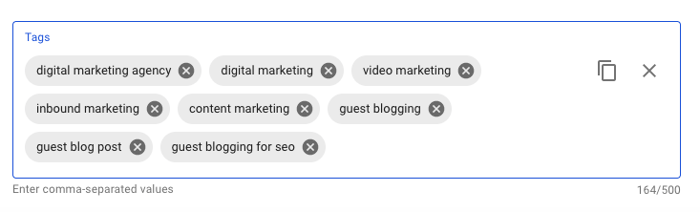For individual videos, try going after long-tail keyword phrases, which are more specific. For example, “digital marketing for small businesses” would be a more targeted keyword phrase than just optimizing for “digital marketing.”