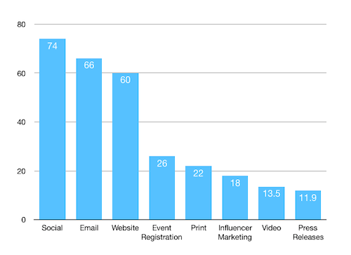 Skift, Inc. reports that event planners listed social media as the most effective tool for event marketing (74%), followed by email marketing (66%), their website (60%), and the event registration site (26%).