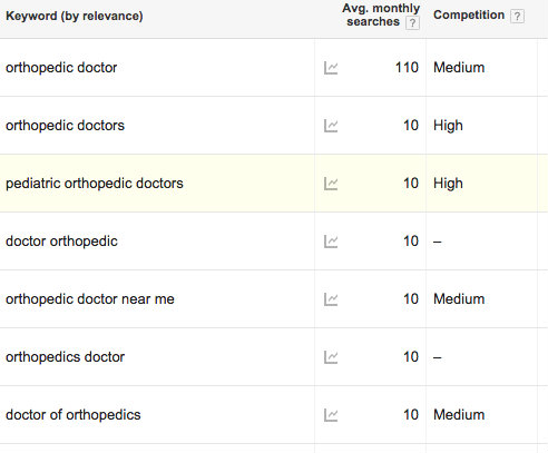 If you work for a practice focused on a particular specialty, then the most popular search terms across the board won’t help much; you need to know the most common search terms that relate to the care your practice provides. To do that, you can use the Google AdWords Keyword Planner to learn which terms people are searching for the most often.
