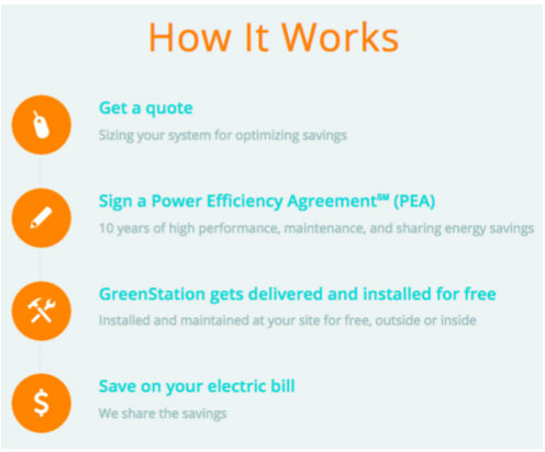 3. The pricing model is outlined on the home page: Installation and maintenance are free and Greencharge makes money by sharing customers’ energy savings.