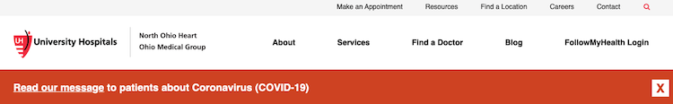 Our team crafted a statement to patients telling them what to do about scheduled appointments, symptoms questions and questions about the virus. In addition to the statement, we linked to information from various health authorities and a way to schedule a telehealth appointment with a provider.