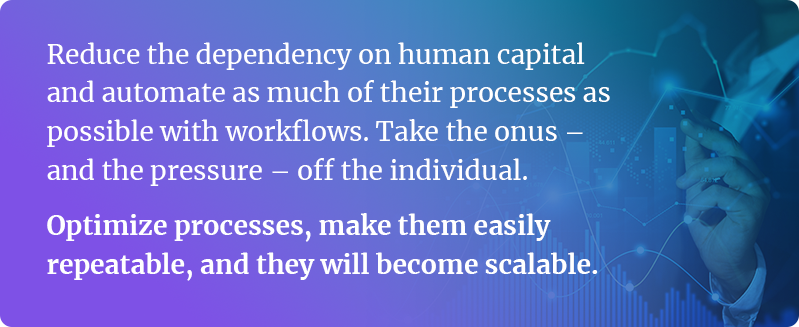 More often than not, the only way to enforce adoption is to tie compensation to the desired result or outcome. But why punish reps if what’s being asked of them could easily be automated? Reduce the dependency on human capital and automate as much of their processes as possible with workflows. Take the onus – and the pressure – off the individual. Optimize processes, make them easily repeatable, and they will become scalable. Not to mention, it makes onboarding new reps more manageable while accelerating their ramp period.