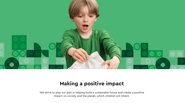 As soon as you land on Lego’s sustainability page, you’re greeted by the image of a child at play. Their mission statement appears just below: