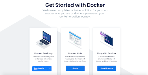 App container solution Docker gives users three ways to get started.