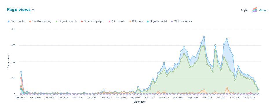 This blog post is a good example. When I first published it in 2015, it was barely a blip on the radar.