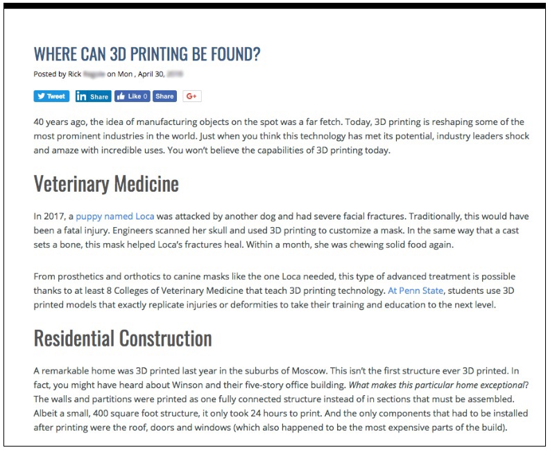 During interviews, we asked what engineers were interested in outside of work. Answers often mentioned technology. We used this information to create ungated blogs that piqued engineers’ interest but were also relevant to campaigns. For example, an article about where 3D printing can be found—automobiles to Hollywood—included a call to action to a longer guide about rapid prototyping.
