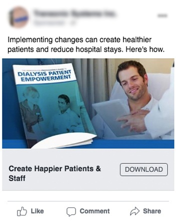 During a campaign for patient empowerment at hemodialysis clinics for one of our medical clients, we targeted nephrologists and dialysis nurses by job title and interest in the American Society of Nephrology. The ads focused on a major pain point clinics experience: When patients are not well, they cannot attend their appointments, so it's up to the clinics to educate and empower patients on how to stay healthy between appointments.